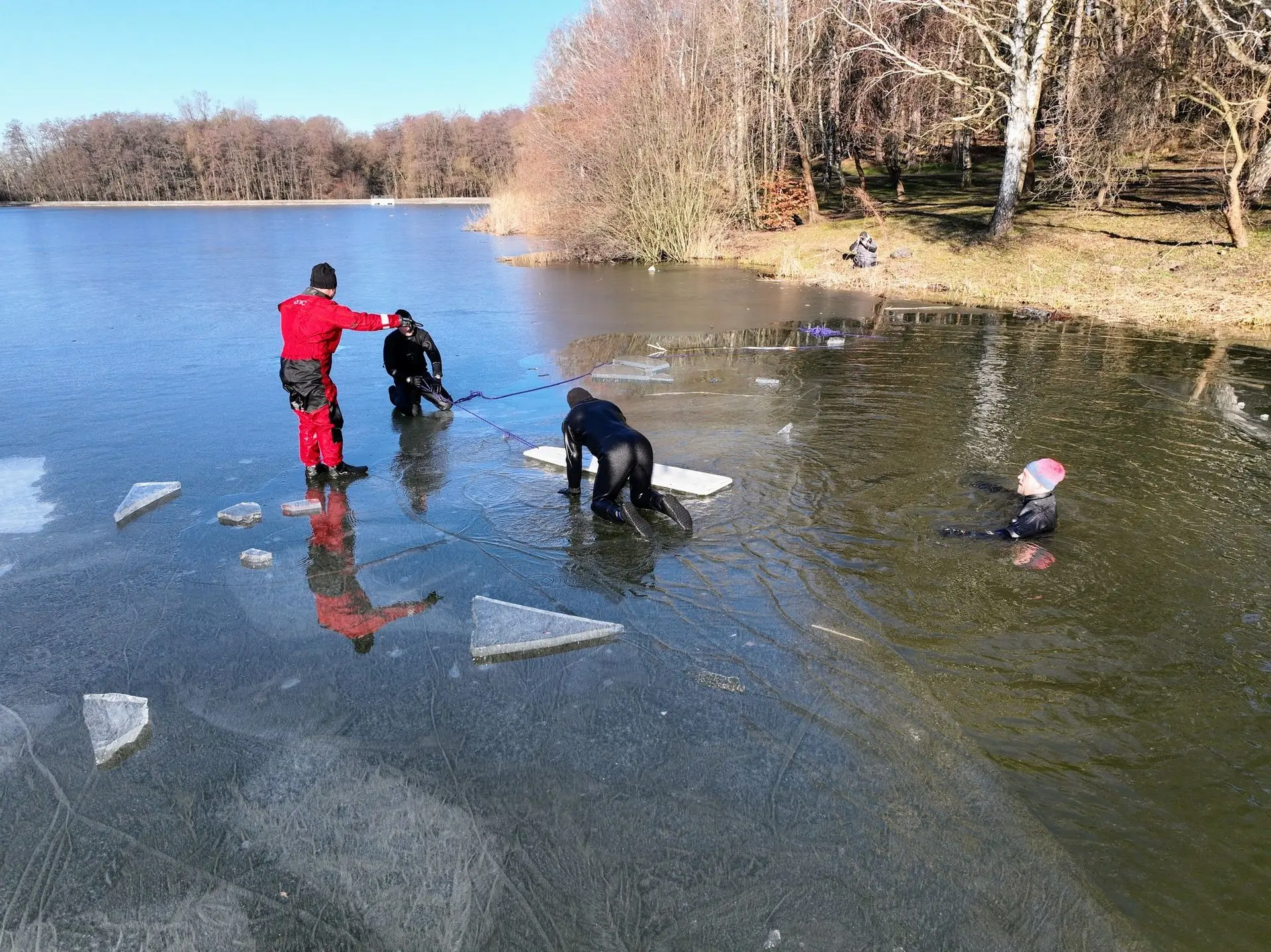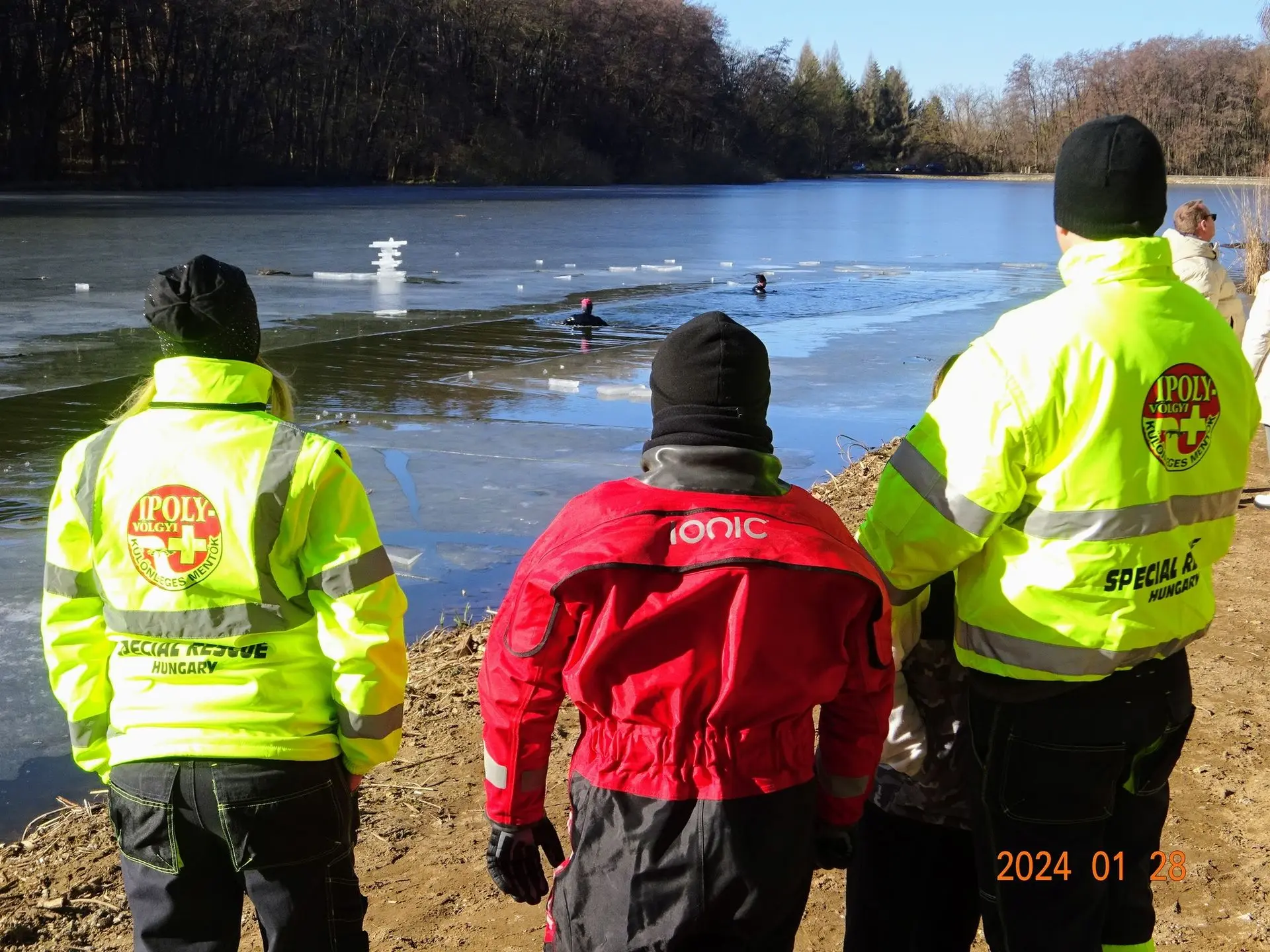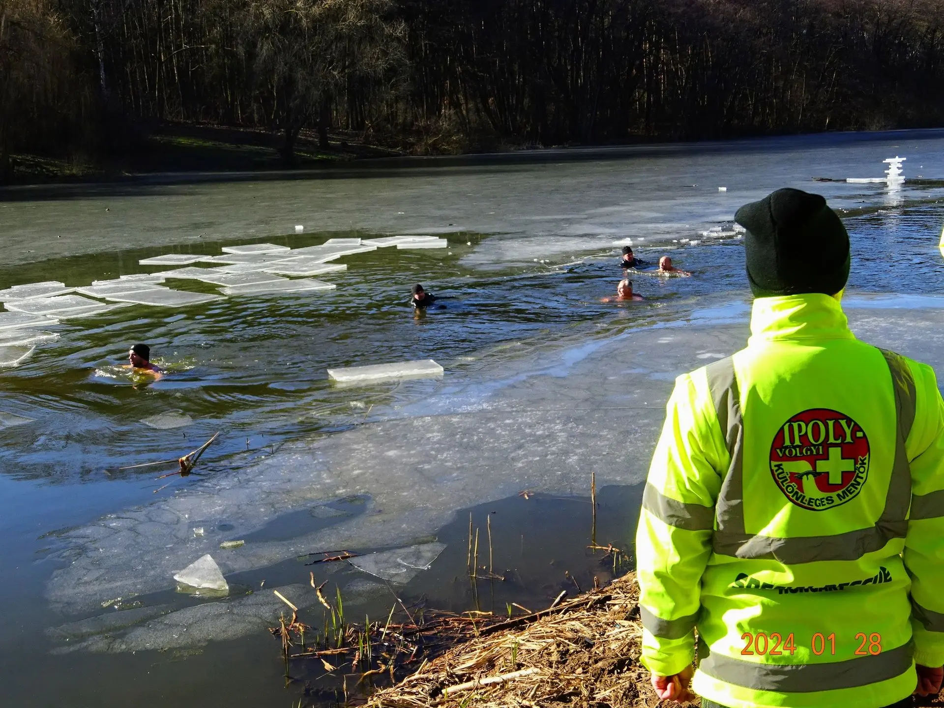 Az idén már hatodik alakalommal mártóztak meg a Nyírjesi-tó jéghideg vizében azok a sportemberek, akik minden évben így tisztelegnek Balassagyarmaton a „Legbátrabb város” egykori hősei előtt. A jéggel borított tóban egyesületünk tagjai alakították ki a több, mint hatvan méter hosszú pályát, ahol öt fős csoportokban teljesítette a távot a mintegy ötven úszó az alig három fokos vízben. Balassagyarmat városának önkéntes mentőszervezeteként, a bátor vállalkozók biztonságára az idén is búvárokkal és vízimentőkkel vigyáztunk. A résztvevőknek ez úton is gratulálunk a nem mindennapi sportteljesítményhez!