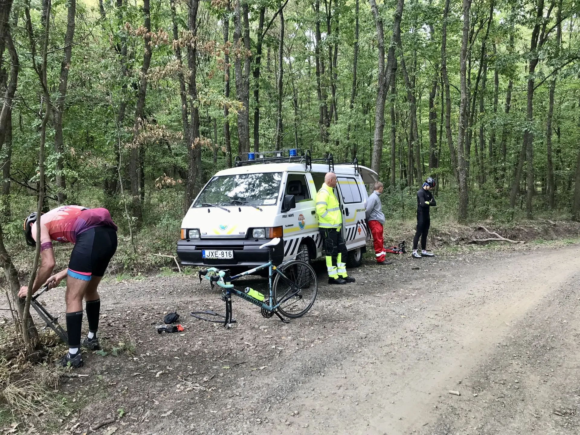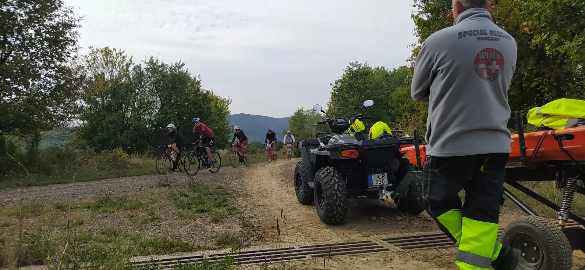 Minden eddiginél több, közel ezerötszáz induló állt rajthoz szombaton délelőtt Szobon, a Börzsöny Ring kerékpáros teljesítménytúrán. A kilencven kilométeres, jelentős szintkülönbséggel nehezített táv Szokolya-Királyrét és Nógrád közötti szakasza erdei úton vezetett, amely közúti járművekkel nem megközelíthető. Itt egyesületünk tagjai, valamint a börzsönyi hegyimentő szolgálatunk önkéntesei vigyáztak a kerékpárosok biztonságára két mentőápolóval, elsősegélynyújtókkal, három terepjáró gépkocsival, valamint egy sérültszállító utánfutóval ellátott quaddal. A három és fél kilométer hosszú, egykori „Szokolyai kövesúton” négy ellenőrzőpontot állítottunk fel, amelyek között (megfelelő mobiltelefon-térerő hiányában) EDR- és URH-rádiórendszerrel biztosítottuk a hírközlést. A murvás úton szerencsére csak kisebb borulások, esések történtek, így mindössze két könnyebb, felületi sérülést kellett ellátnunk a körtúra idején.