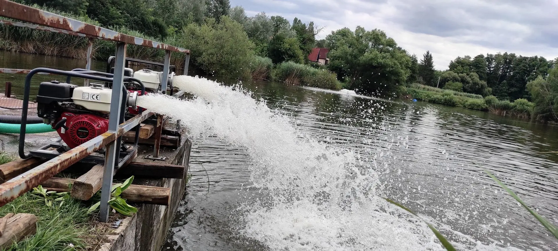 Két nagy teljesítményű szivattyúval siettünk a helyszínre, ahol az elmúlt napokban a horgászegyesület és a Nógrádmarcali Önkéntes Tűzoltók munkáját óránként mintegy 180 köbméter víz forgatásával igyekeztünk segíteni.