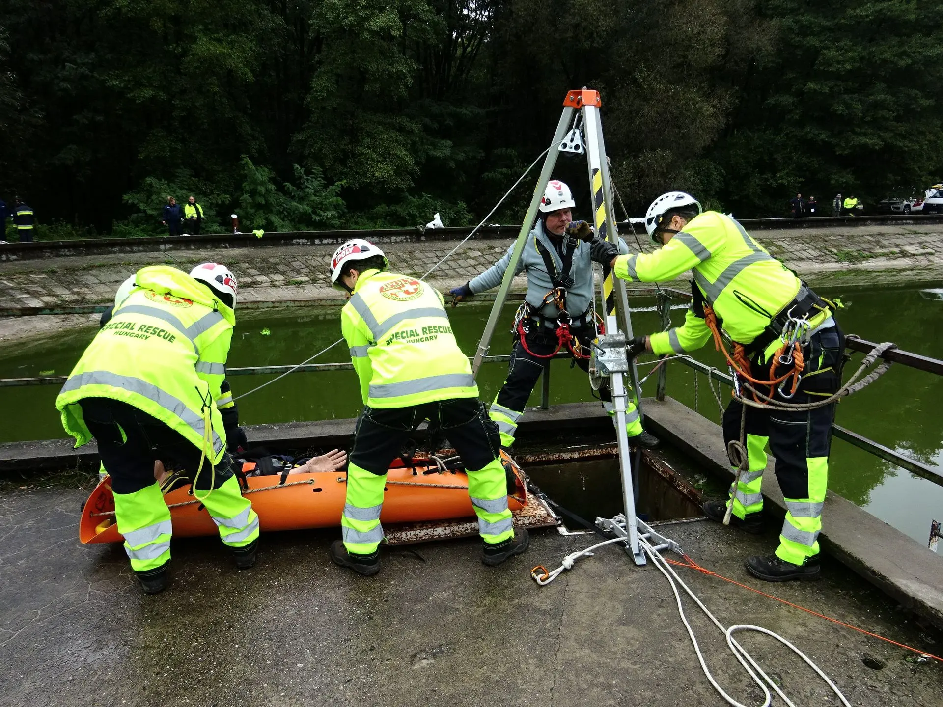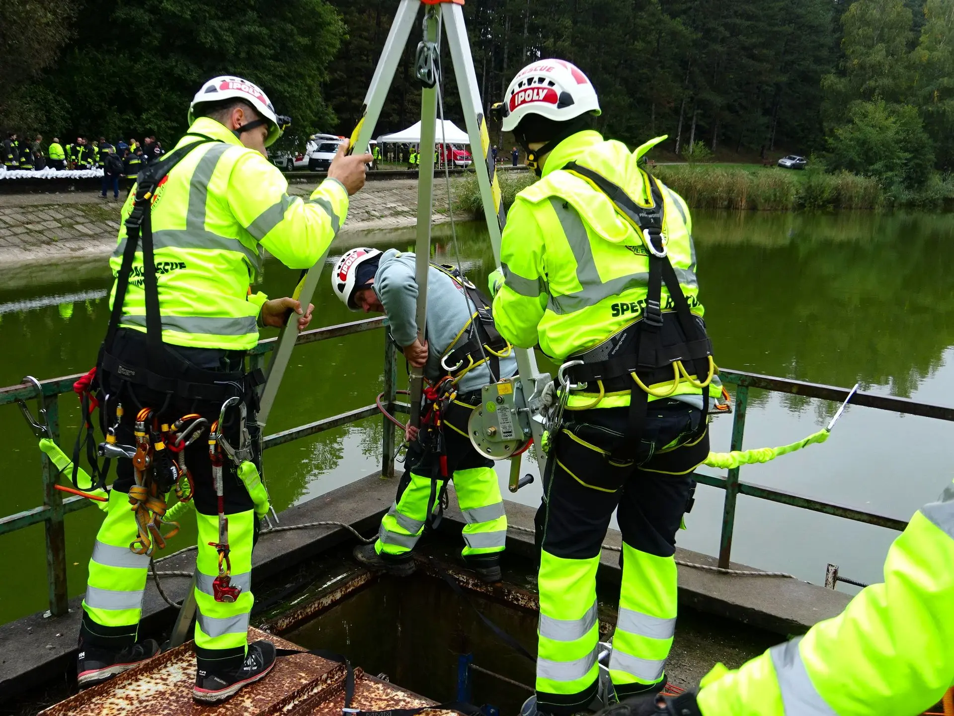 A Balassagyarmat melletti Nyírjesi üdülőközpontban szervezte meg a Nógrád Vármegyei Katasztrófavédelmi Igazgatóság a Balassagyarmati, a Szécsényi és a Rétsági Járásban tevékenykedő önkéntes mentőszervezetek ötévente esedékes minősítő gyakorlatát. Ipari alpinistáink egy, a tórendszer zsilipjének aknájába zuhant feltételezett sérült kiementését hajtották végre mentőállvány és egy speciális SKEDCO hordágy segítségével.