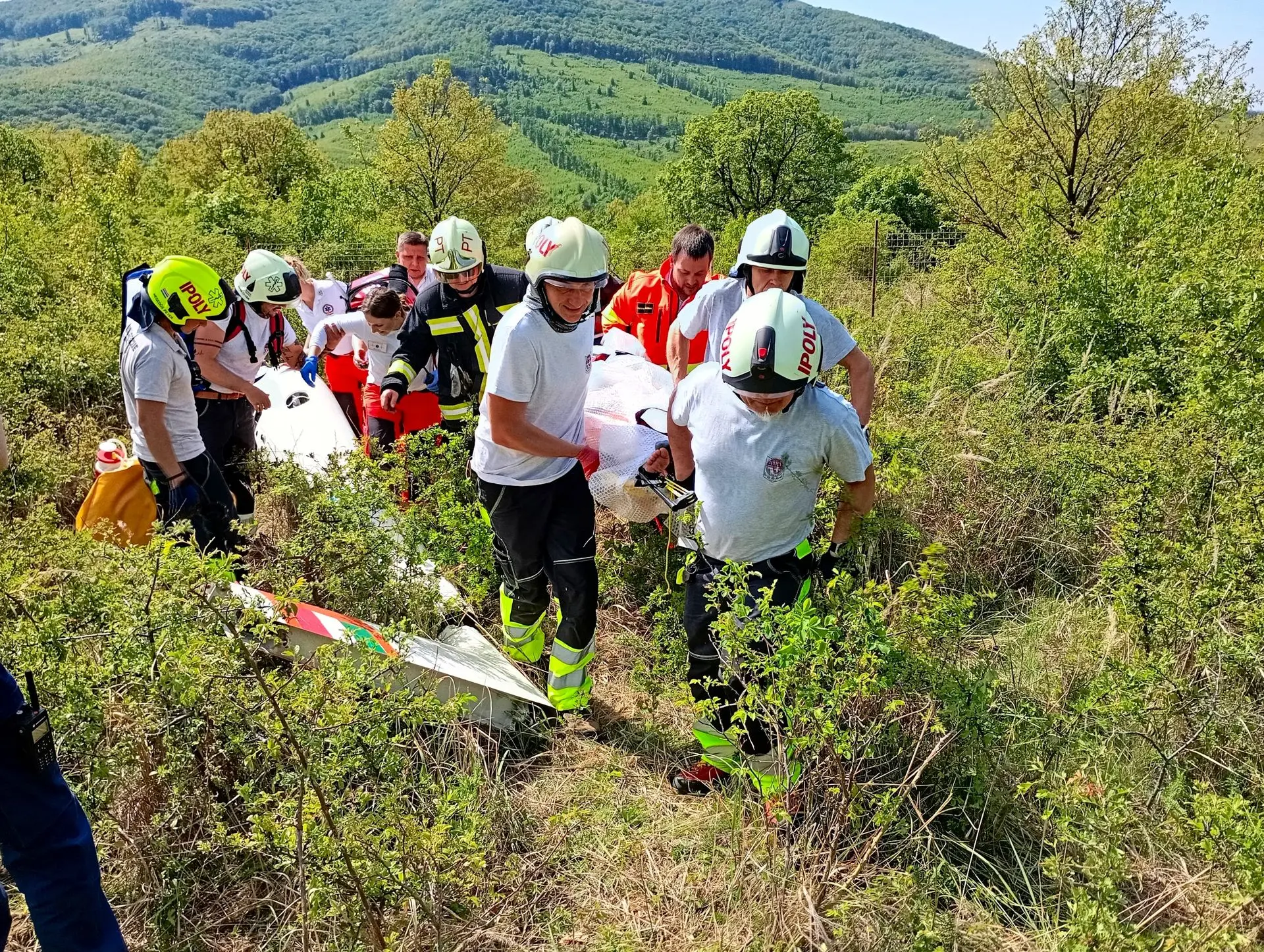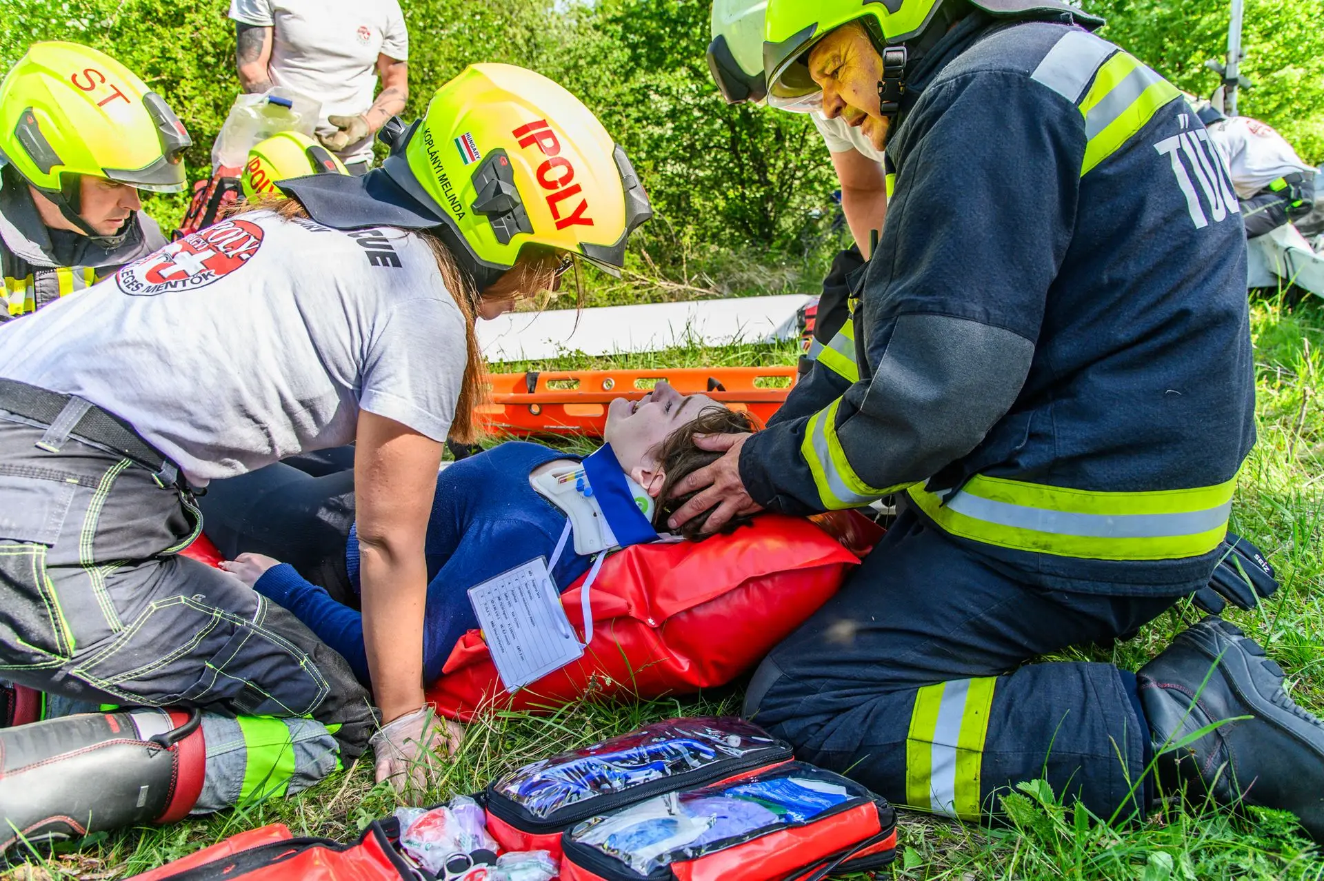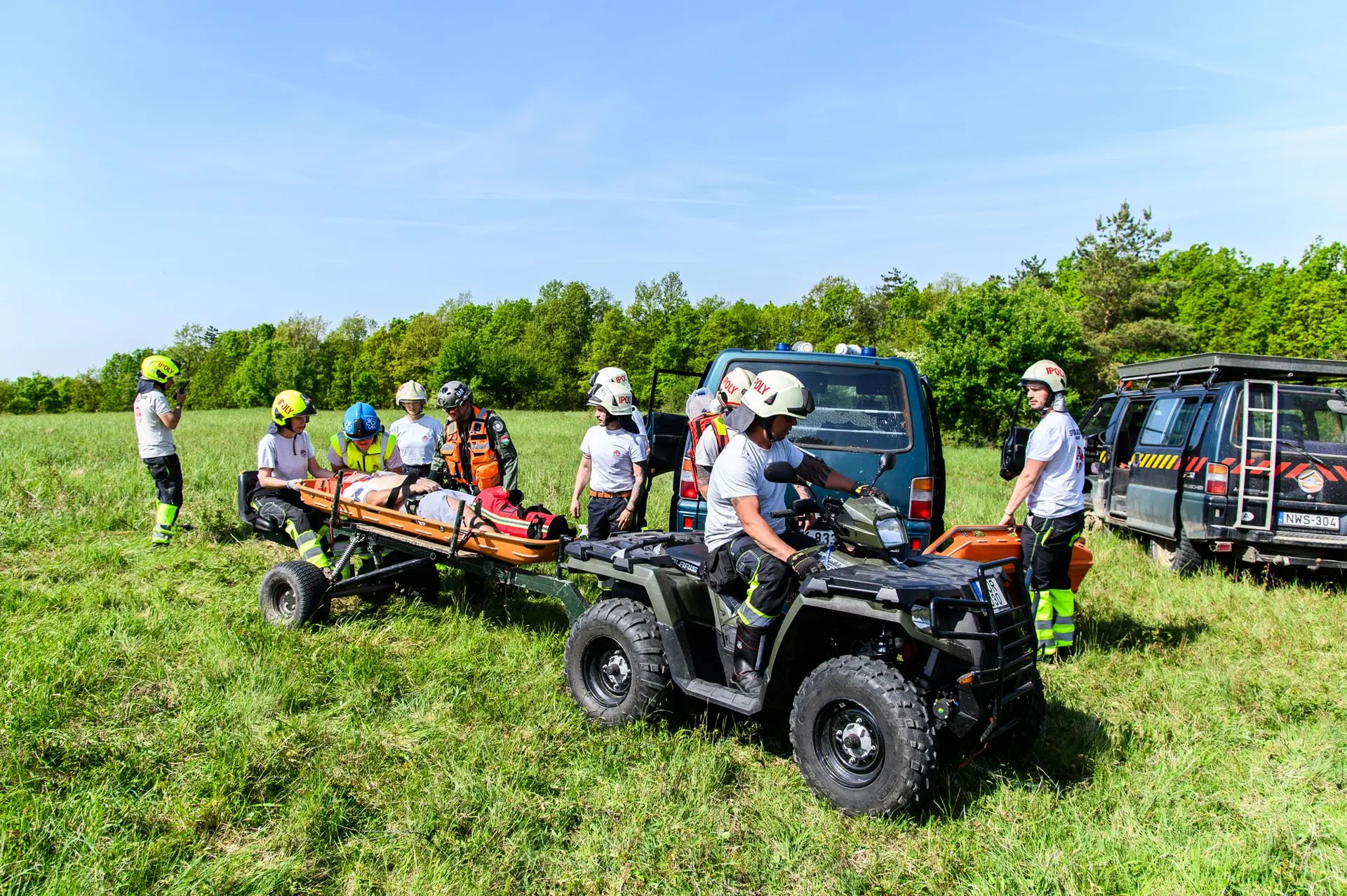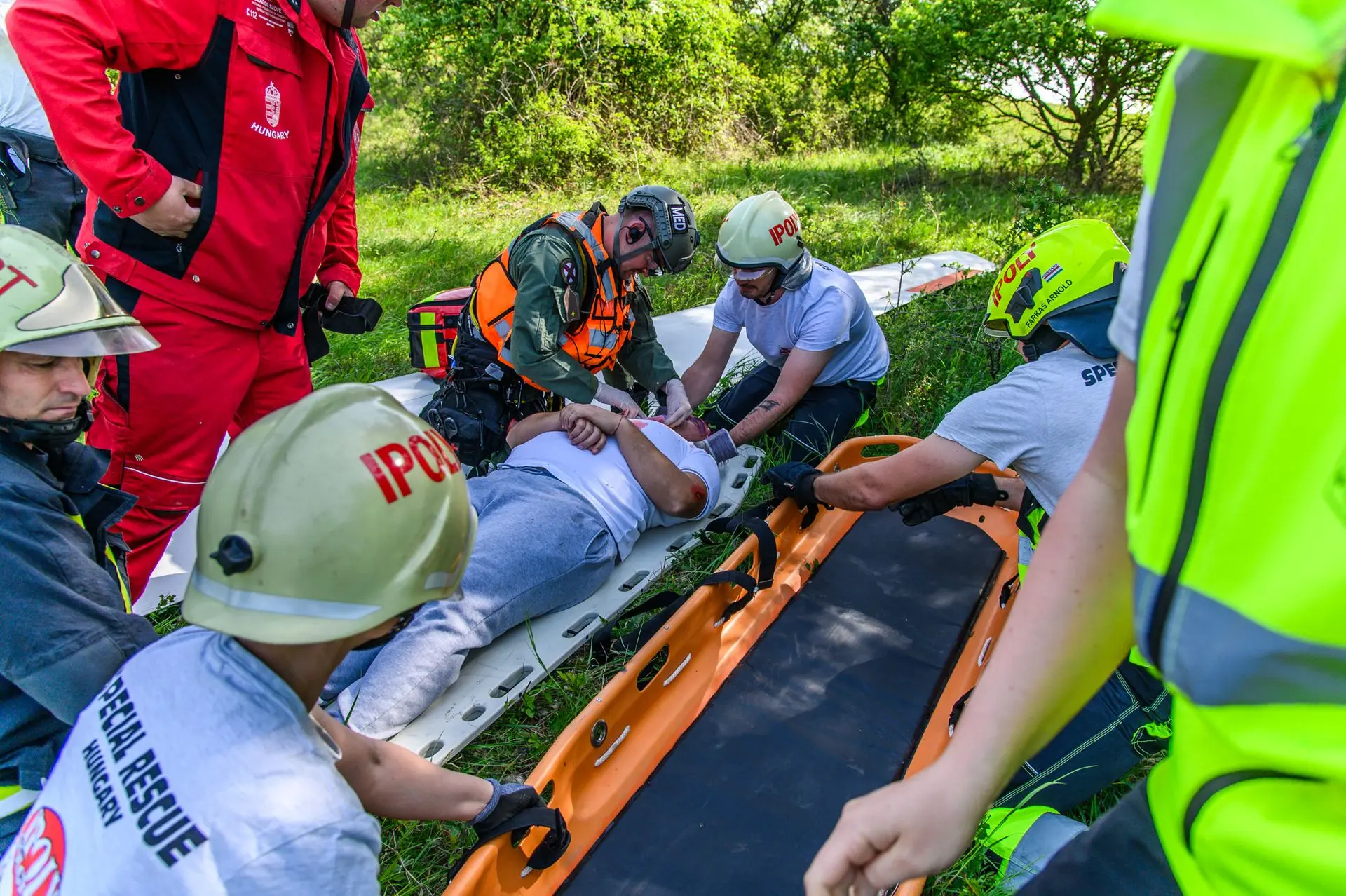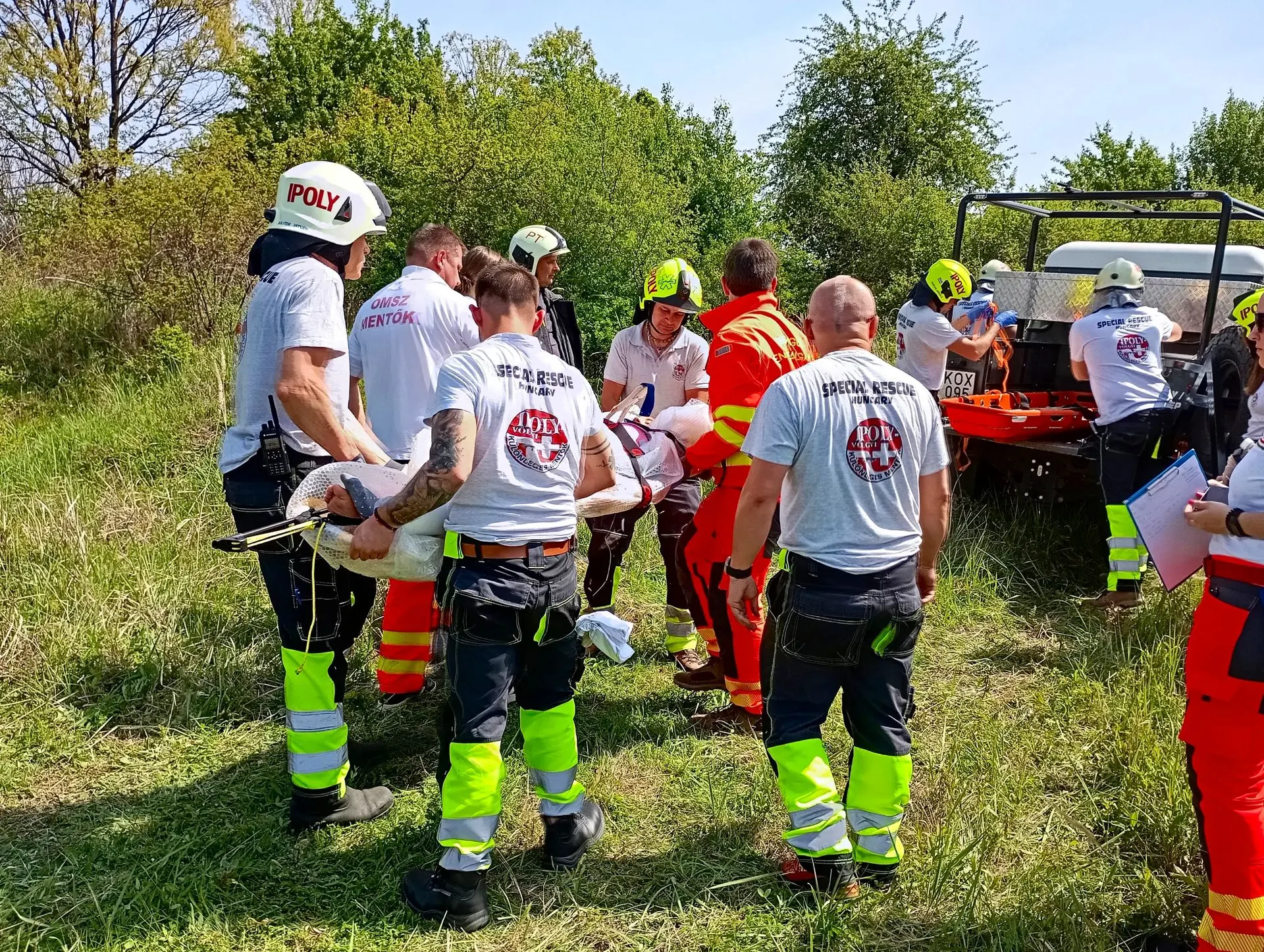 A tömeges kárhelyszínre a sérültek ellátásához az Országos Mentőszolgálat nagy létszámú egységekkel vonult ki, a sérültek kimentéséhez, valamint a közvetlen helyszíni ellátásukhoz és szállításukhoz pedig egyesületünk érkezett meg mentőtiszttel, mentőápolókkal, hivatásos és önkéntes tűzoltókkal, akiknek a munkáját három terepjáró gépkocsi és egy sérültszállító utánfutóval ellátott quad segítette.