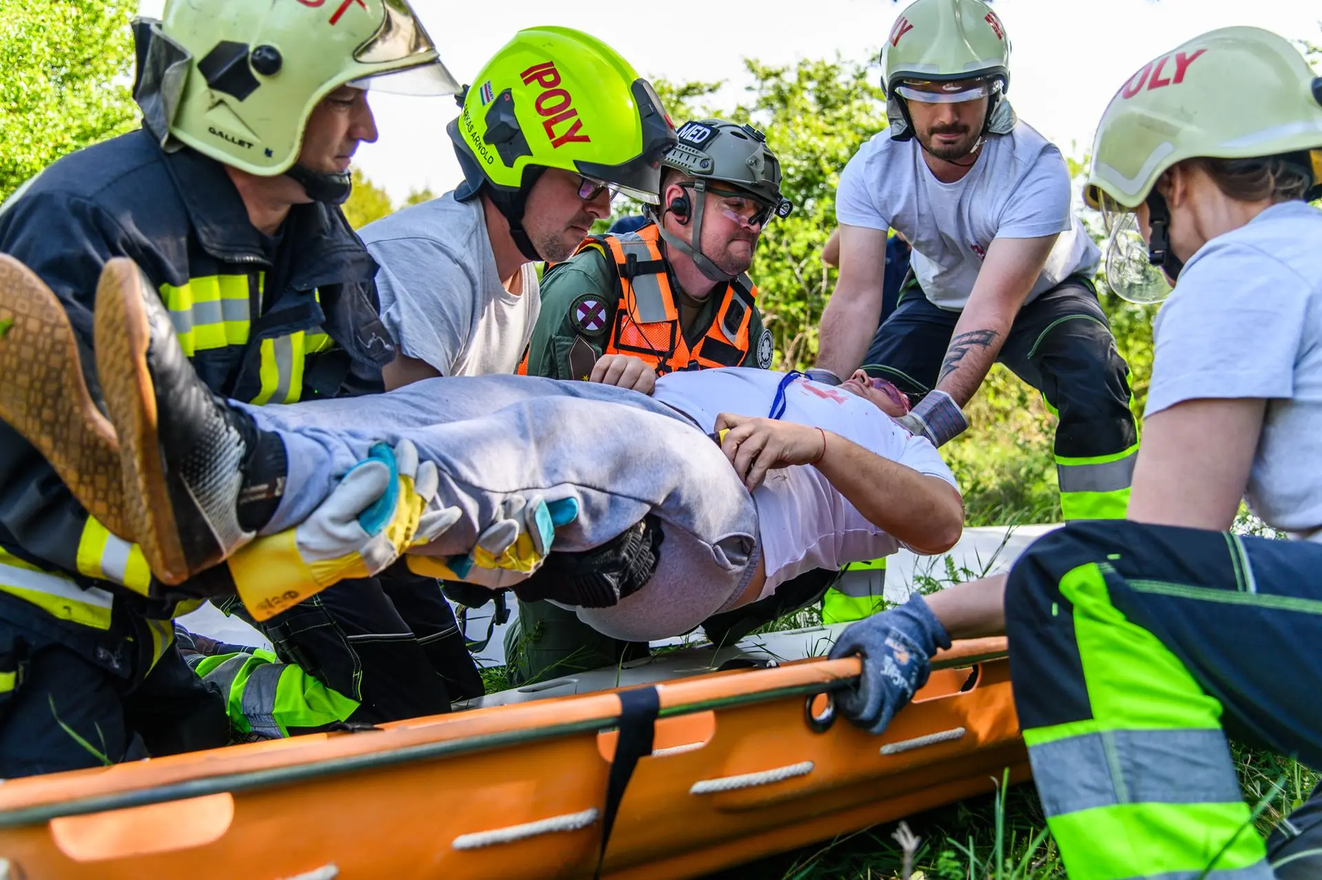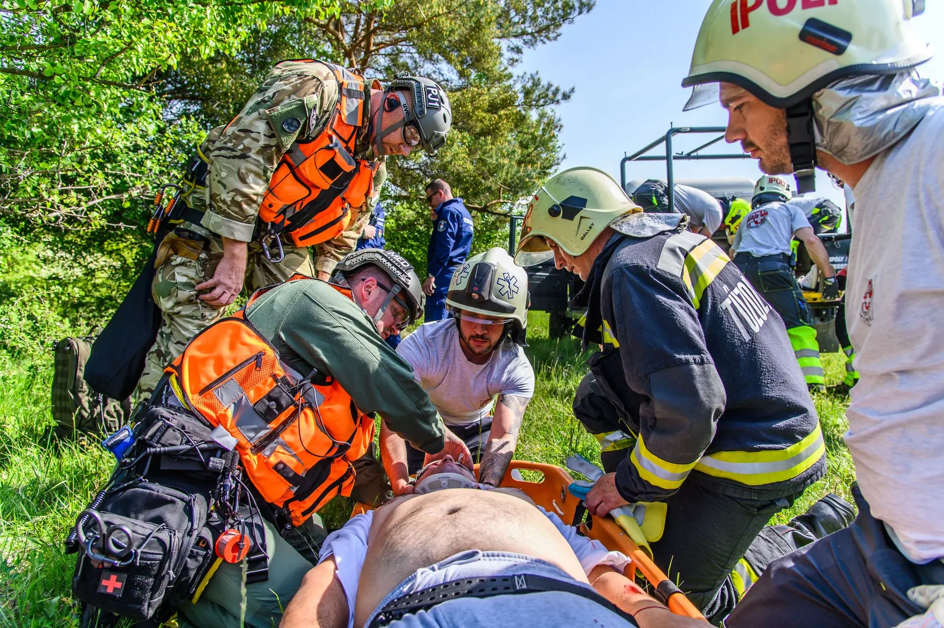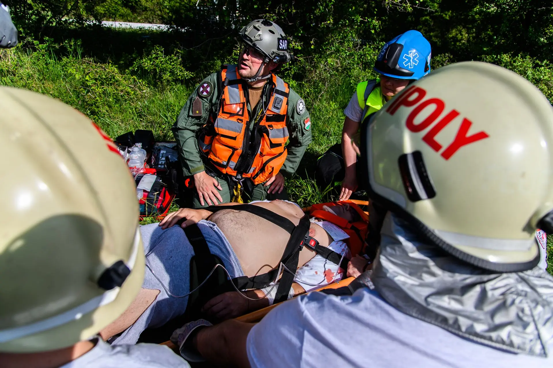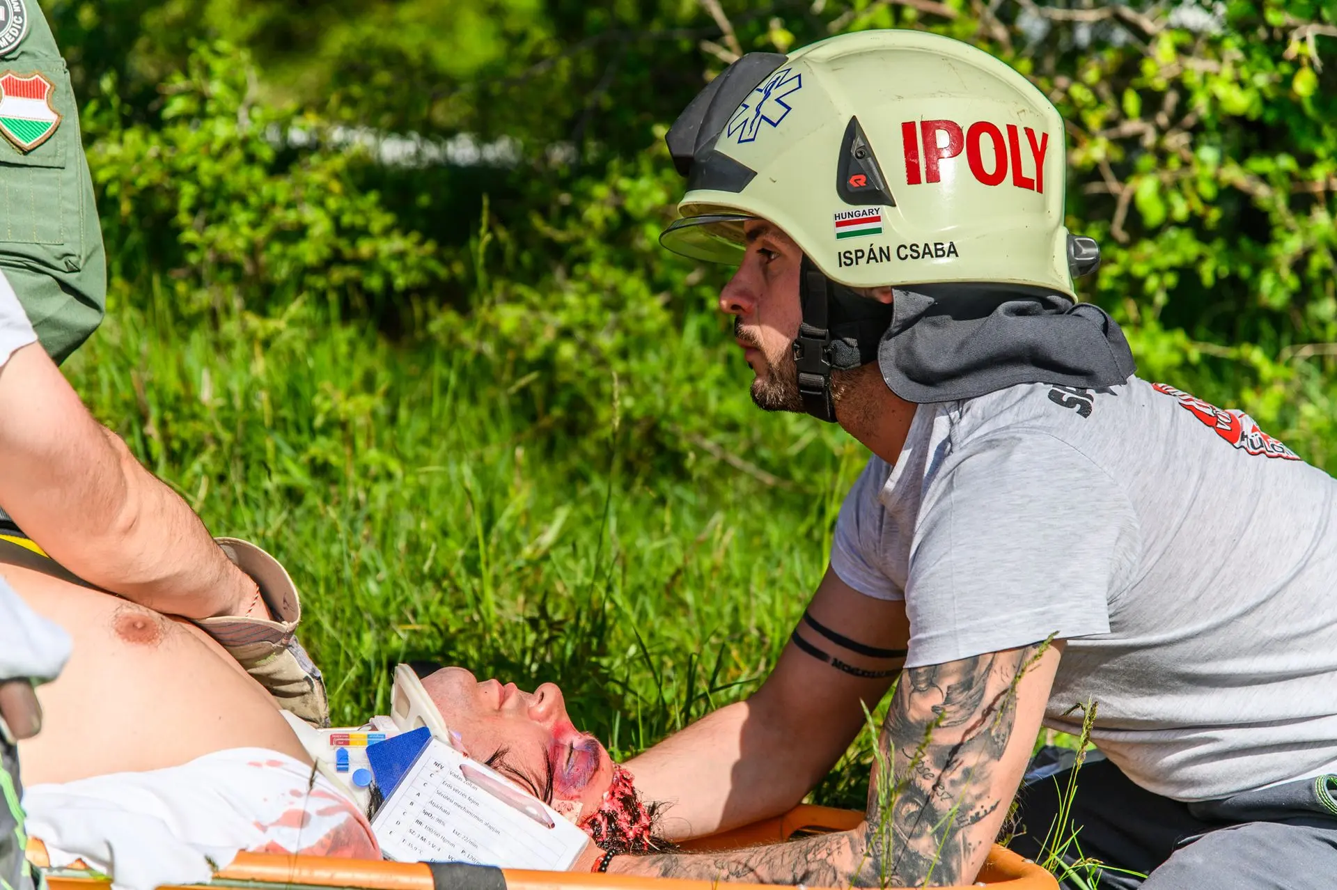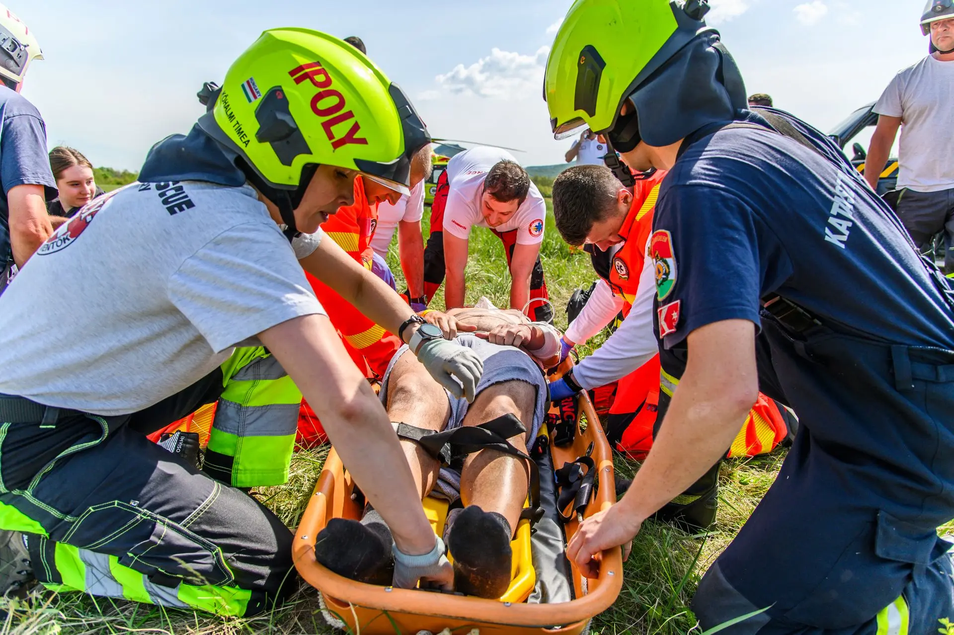 A tömeges kárhelyszínre a sérültek ellátásához az Országos Mentőszolgálat nagy létszámú egységekkel vonult ki, a sérültek kimentéséhez, valamint a közvetlen helyszíni ellátásukhoz és szállításukhoz pedig egyesületünk érkezett meg mentőtiszttel, mentőápolókkal, hivatásos és önkéntes tűzoltókkal, akiknek a munkáját három terepjáró gépkocsi és egy sérültszállító utánfutóval ellátott quad segítette.