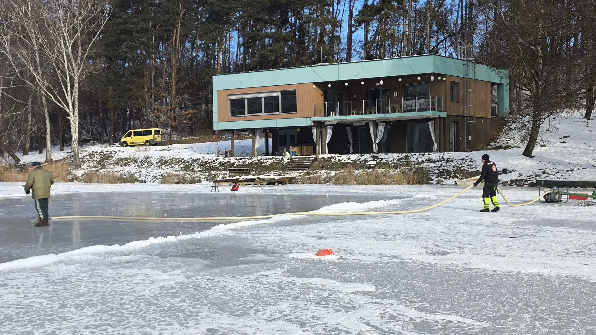 Jégpálya készül a Nyírjesben: 2026. január 20-án és 21-én a téli sportok kedvelőinek igyekeztünk örömet szerezni. A Nyírjesi-tó vastag jegét egy civil kezdeményezés keretében segítettünk előkészíteni a sportoláshoz: a hótól megtisztított területet vízzel árasztottuk el, hogy tökéletes, sima jégfelület várja majd a korcsolyázókat.